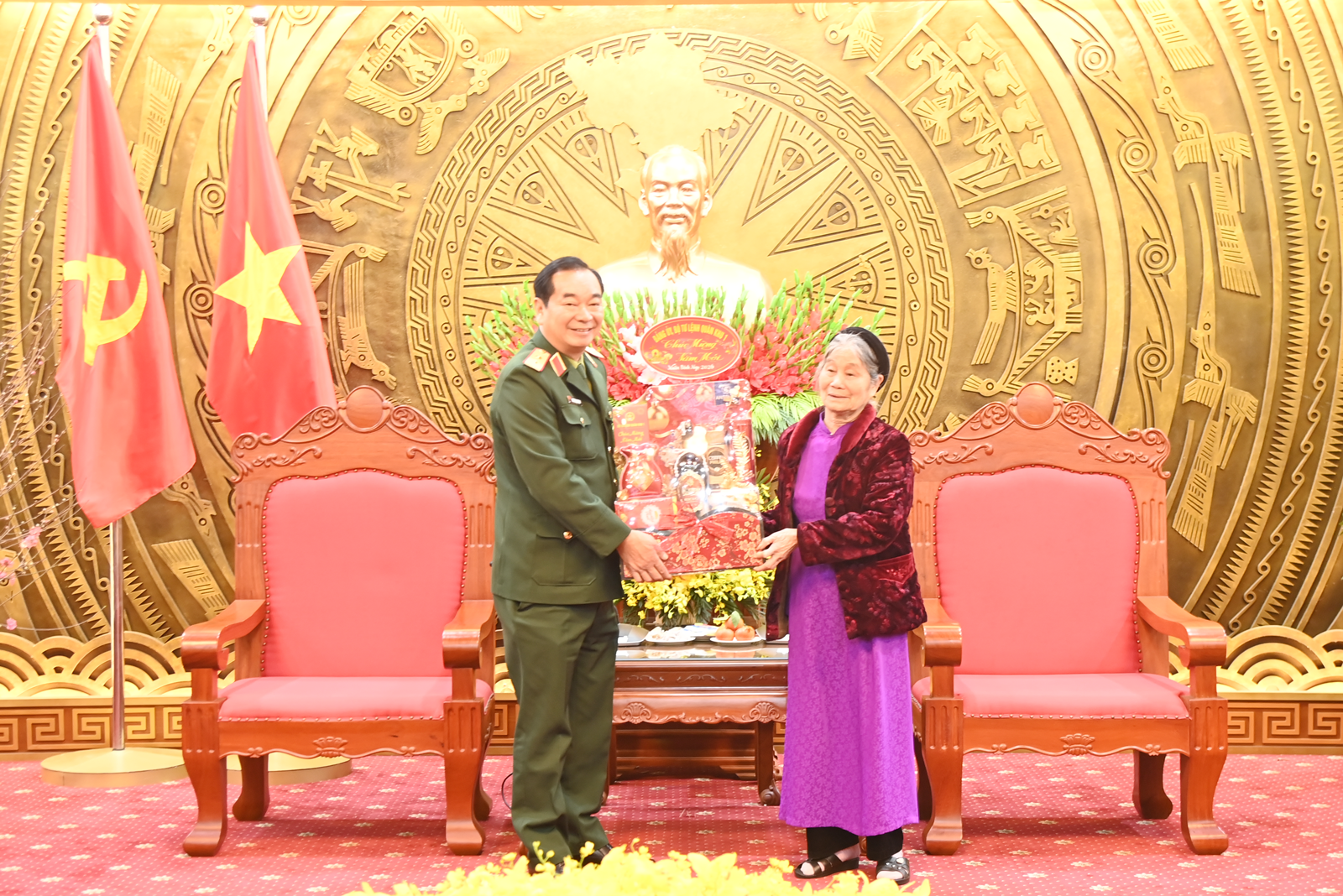 Trung tướng Trương Mạnh Dũng tặng quà, chúc Tết Mẹ Việt Nam Anh hùng Đinh Thị Sùng.