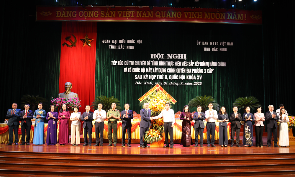 Đại biểu Quốc hội tỉnh Bắc Ninh tham Các đại biểu Quốc hội tỉnh tại hội nghị tiếp xúc cử tri.dự hội nghị gồm các đồng chí: Nguyễn Hòa Bình, Ủy viên Bộ Chính trị, Bí thư Trung ương Đảng, Phó Thủ tướng Thường trực Chính phủ; Đào Hồng Lan, Ủy viên Trung ương Đảng, Bộ trưởng Bộ Y tế; Thượng tướng Trần Quốc Tỏ, Ủy viên Trung ương Đảng, Phó Bí thư Đảng ủy Công an Trung ương, Thứ trưởng Bộ Công an; Nguyễn Anh Tuấn, Ủy viên Trung ương Đảng, Phó Trưởng Ban Chính sách, chiến lược Trung ương; Nguyễn Ngọc Bảo, Phó Chủ nhiệm Ủy ban Kinh tế và Tài chính của Quốc hội; Nguyễn Thị Thúy Ngần, Phó Chủ nhiệm Văn phòng Quốc hội; Phạm Văn Thịnh, Phó Chủ tịch UBND tỉnh, Trưởng Đoàn Đại biểu Quốc hội khóa XV tỉnh Bắc Ninh; Trần Văn Tuấn, Phó Trưởng Đoàn Đại biểu Quốc hội khóa XV tỉnh Bắc Ninh; Trần Văn Lâm, Ủy viên, đại biểu Quốc hội hoạt động chuyên trách tại Ủy ban Công tác đại biểu của Quốc hội; Nguyễn Thị Kim Anh, Ủy viên, đại biểu Quốc hội hoạt động chuyên trách tại Ủy ban Khoa học, Công nghệ và Môi trường của Quốc hội; Leo Thị Lịch, đại biểu Quốc hội hoạt động chuyên trách tại Hội đồng dân tộc của Quốc hội; Nguyễn Như So, Chủ tịch Hiệp hội Thức ăn chăn nuôi Việt Nam, Bí thư Đảng ủy, Chủ tịch Hội đồng quản trị Công ty cổ phần Tập đoàn DABACO Việt Nam; Nguyễn Văn Thi, nguyên Tỉnh ủy viên, nguyên Bí thư Huyện ủy huyện Lạng Giang, tỉnh Bắc Giang (trước khi sáp nhập với tỉnh Bắc Ninh); Đỗ Thị Việt Hà, Phó Giám đốc Sở Tư pháp tỉnh Bắc Ninh; Nguyễn Thị Hà, Giáo viên Trường THPT Hàn Thuyên.